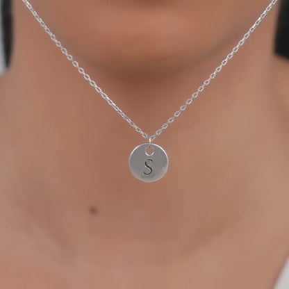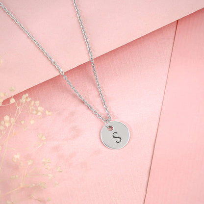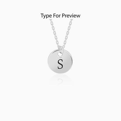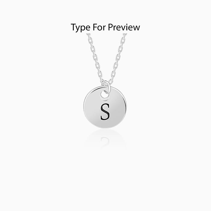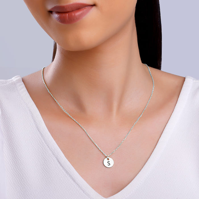 This silver personalised pendant with link chain for women features a circular motif engraved with an initial of your choice.