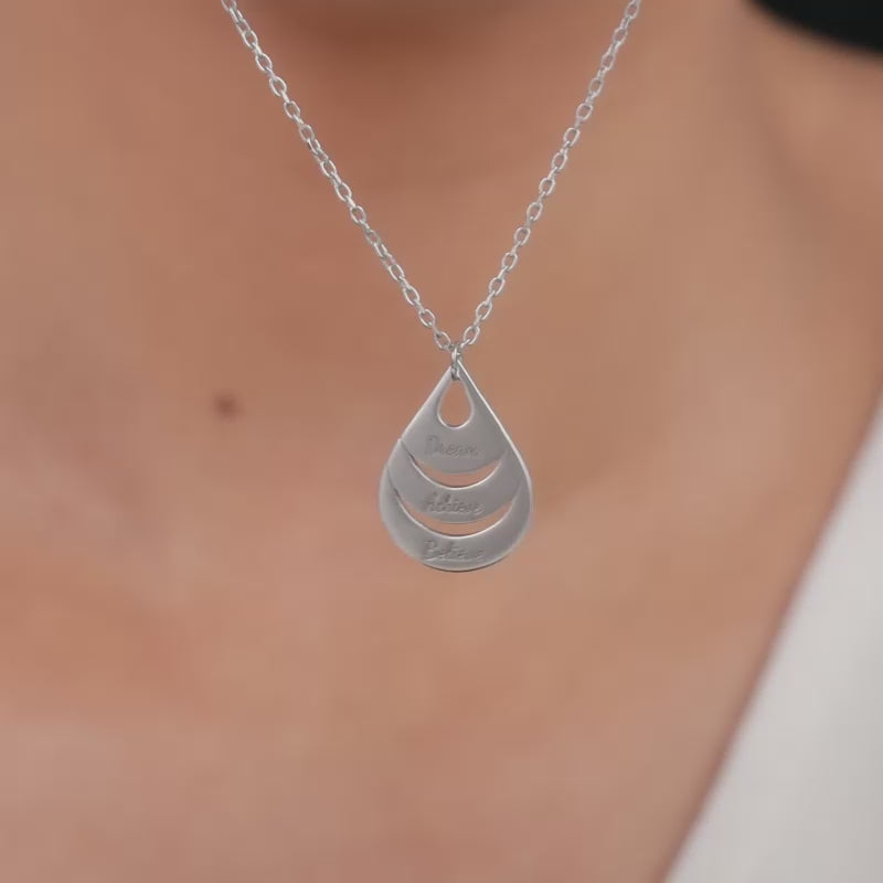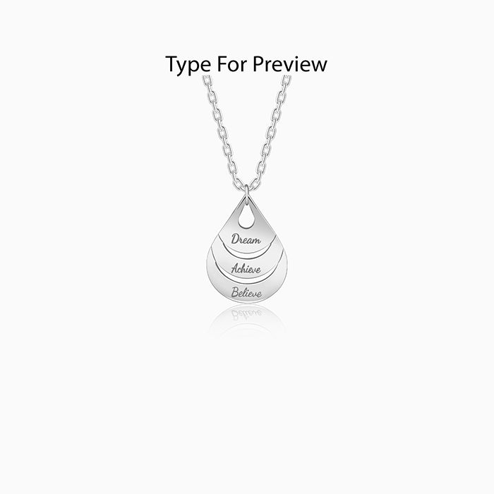 This silver customized pendant for women has a teardrop shape with a three-tier design within. Every tier has the provision of personalising it with names/ words of your choice.