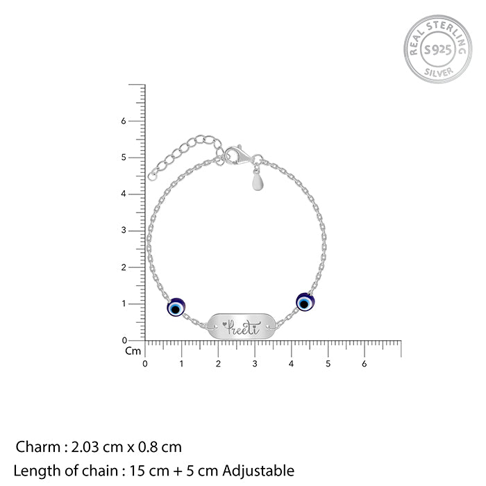 Wear this personalised bracelet like your daily dose of “good vibes only,” with your name shining right beside the evil eye bead.
