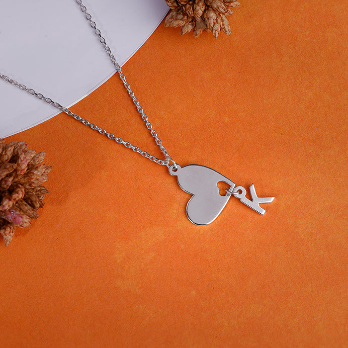 A silver personalised pendant for a woman that features a heart and a chosen initial. A heart that meets your chosen...