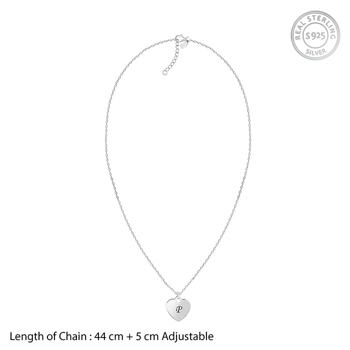 This silver personalised pendant for women features a heart motif with an initial of your choice engraved on it.