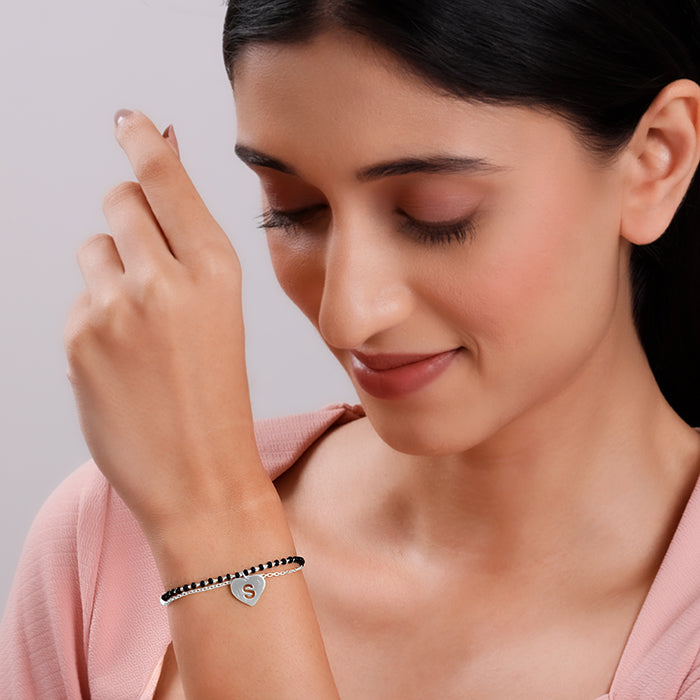 Silver Personalised Heartfelt Initial Mangalsutra Bracelet