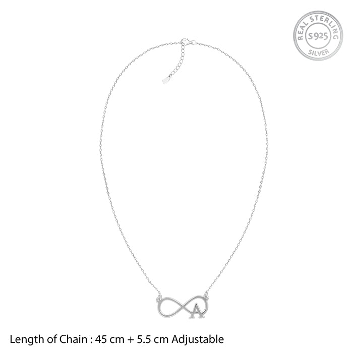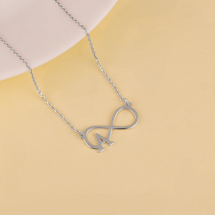 Sleek meets sentimentalism in this stunning personalised silver initial necklace for women. Features a dainty infinity charm fused with your chosen initial. The lightweight link chain keeps it easy to wear.