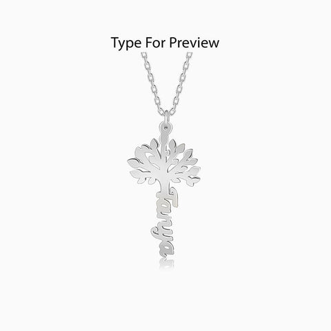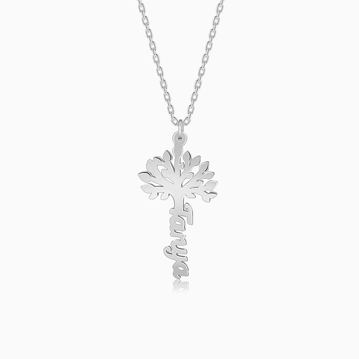 This personalised silver pendant for women features a beautiful canopy-like motif, with the name of your choice forming the trunk.