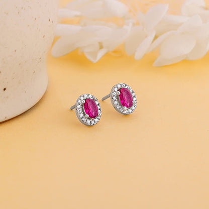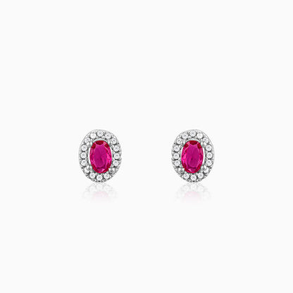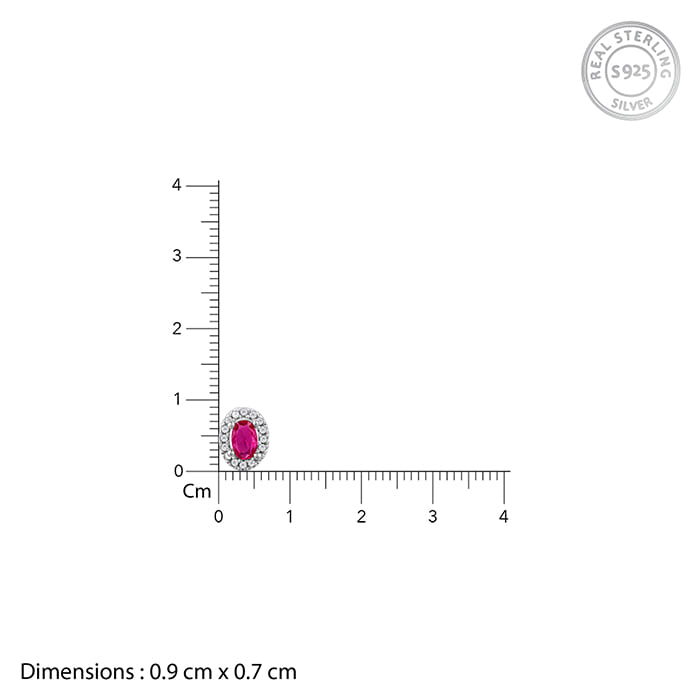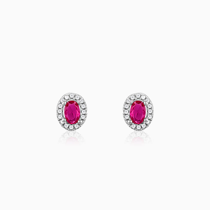These silver studs feature an oval motif with zircons studded around and a pink-coloured stone placed at the centre.