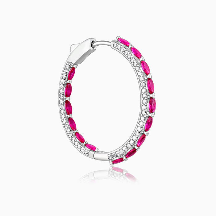 These silver hoop earrings feature pink marquise-cut stones set in a zircon studded hoop.