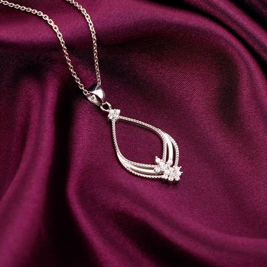 This pendant has an eye-catching elongated hoop with a cluster of zircons on the top and the bottom tip.
