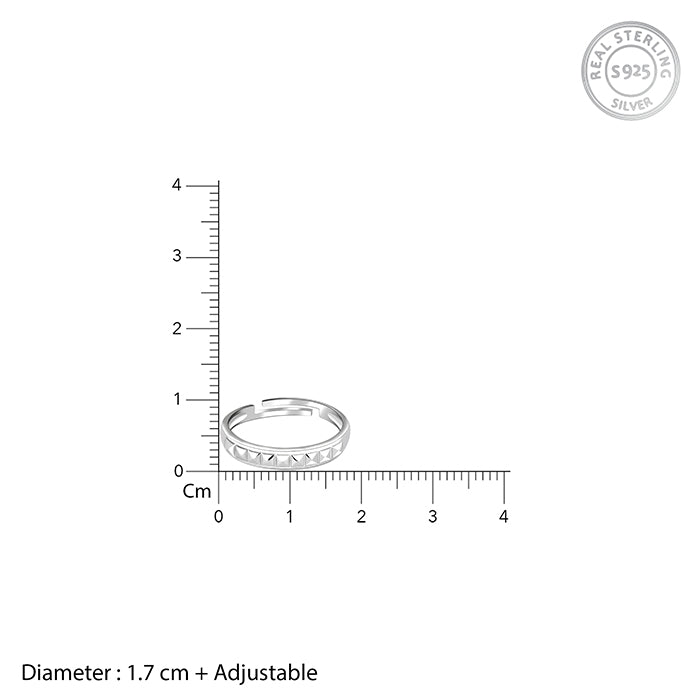 This silver ring has small pyramid motifs designed around the adjustable ring.