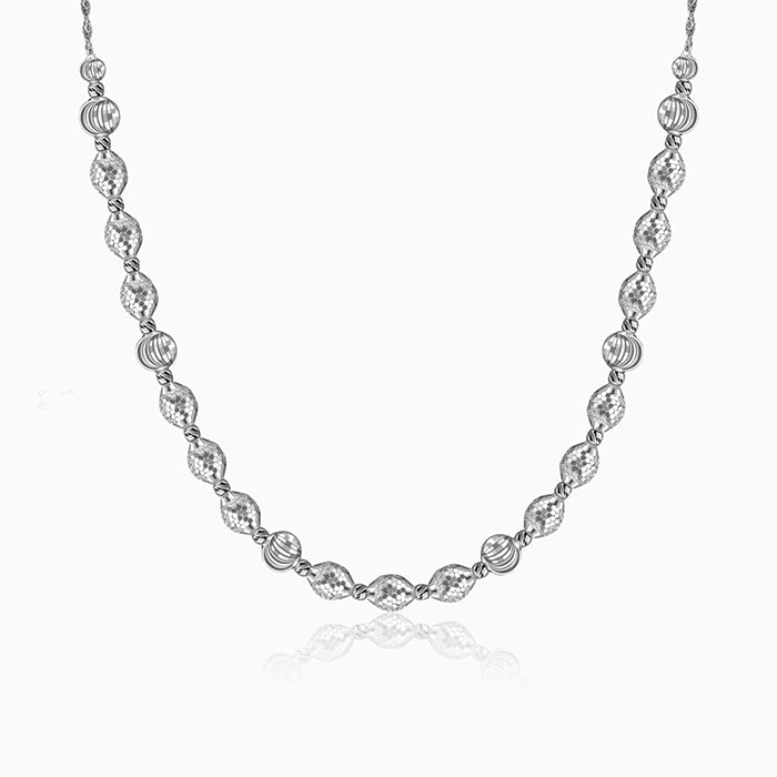 Forget "less is more." More is more. This necklace blends intricate CNC cut textures with high-shine ribbed beads. For the bold soul who treats every sidewalk like a gala. Barkha Singh x GIVA brings to you the Glow in Motion collection that celebrates CNC craftsmanship for the first time in silver.