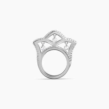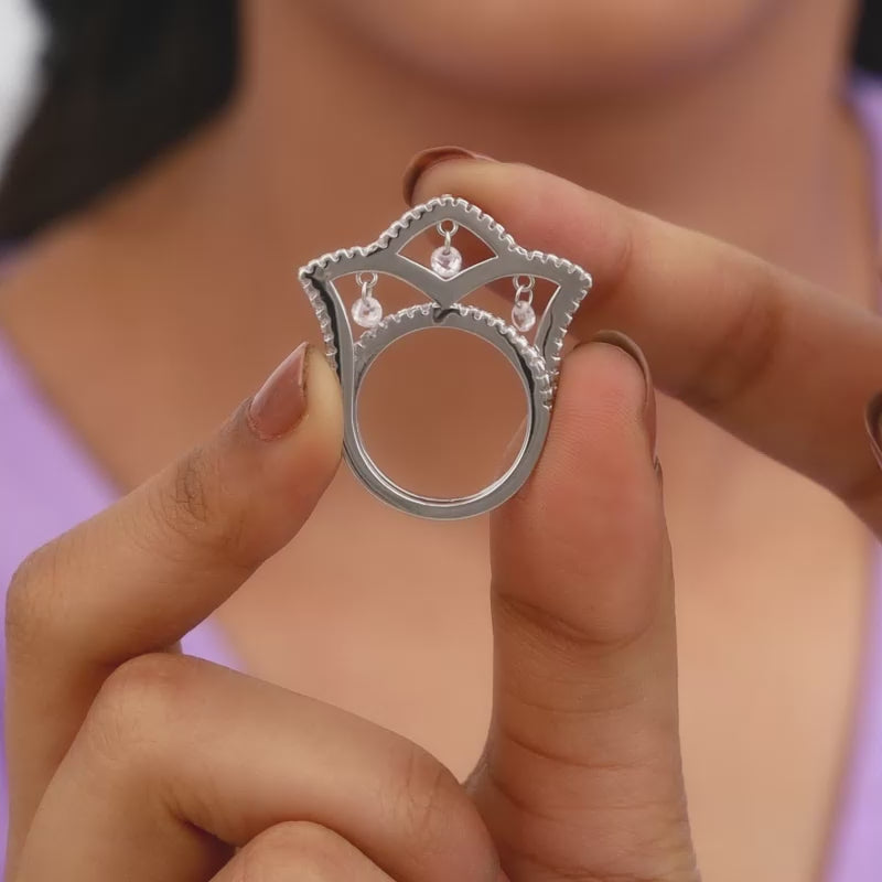 This silver ring features a 3D crown motif set with zircons studded nestling zircon charms.