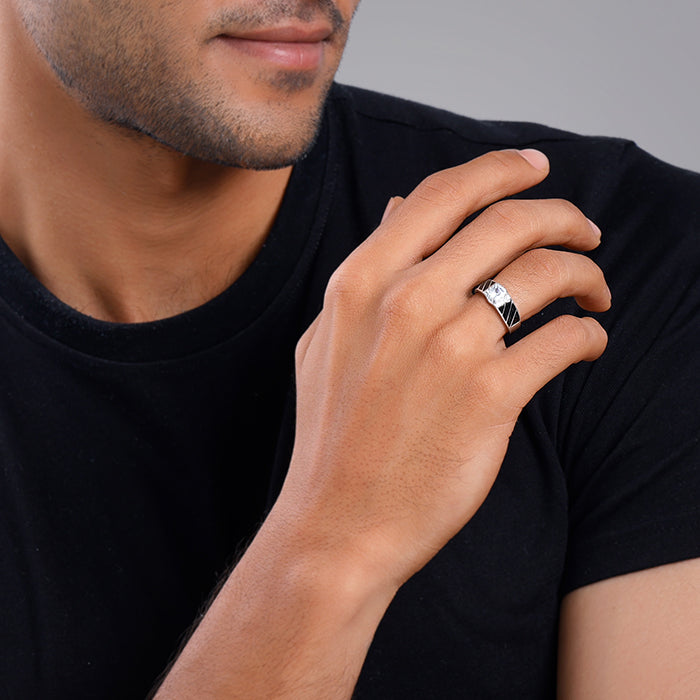 Bold and unmissable, this ring showcases your confidence in every angle. With a square zircon at the centre, surround...