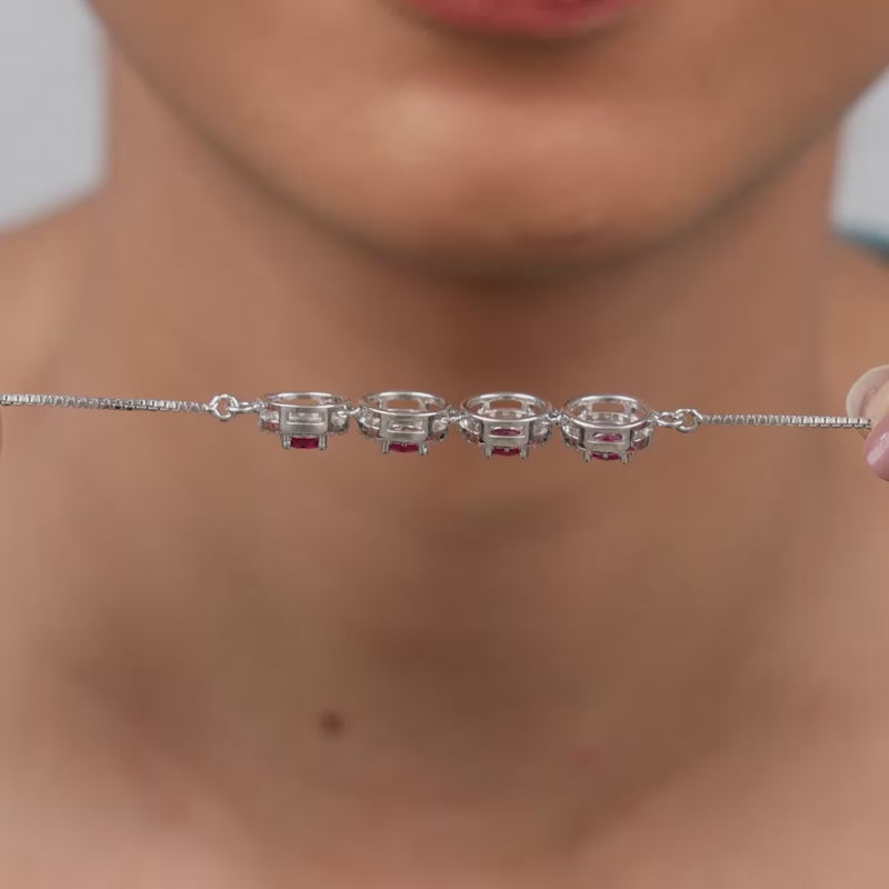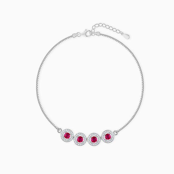 For the woman whose style speaks before she does, this silver bracelet with vibrant red zircons at the centre, encirc...