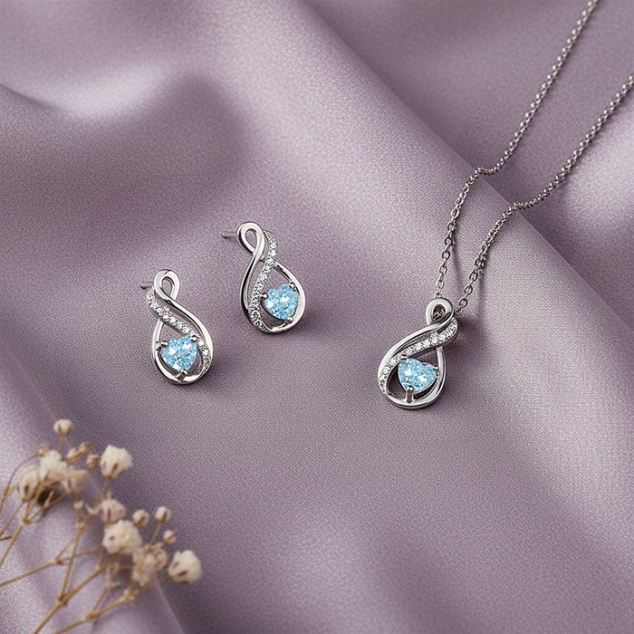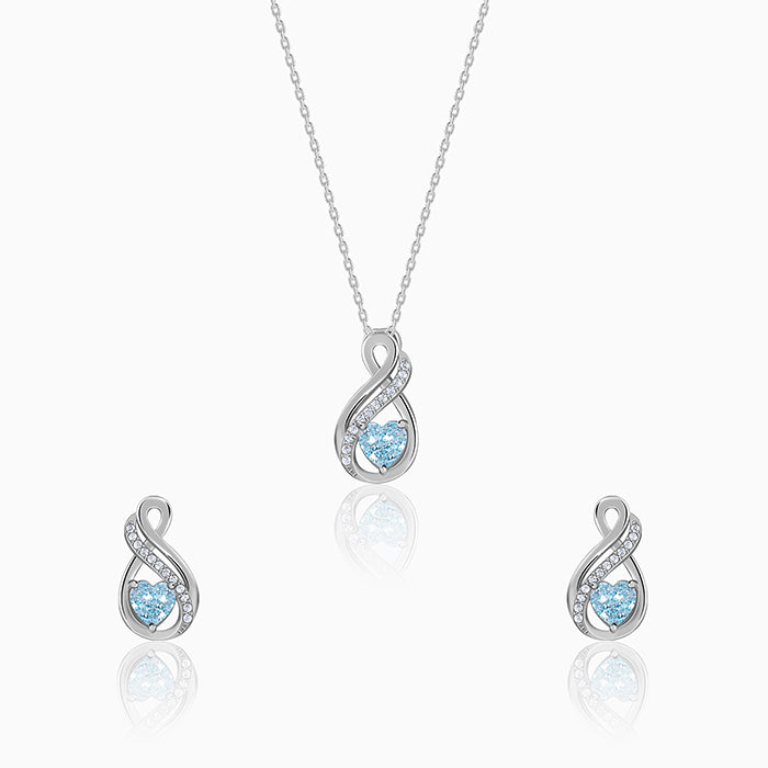 A symbol of love that flows endlessly. The blue ice-cut heart stone rests within a graceful infinity, while a trail of zircons adds a soft shimmer that feels timeless and effortless. This matching silver earrings and pendant for women is perfect to match with everyday outfit.This Valentine’s, we're bringing to you - All Yours - our signature ice-cut stones in soulful shades, because some emotions deserve more than words.