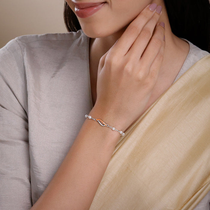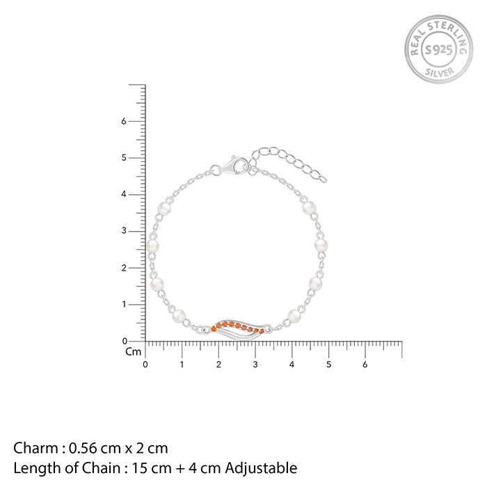 This silver bracelet for women features a leaf design studded with colourful zircons. The chain is accented with pearls. Designed in Italy. Inspired by India. Embrace the goddess within with the Shakti Collection by GIVA x Anna Giulia Chicco.