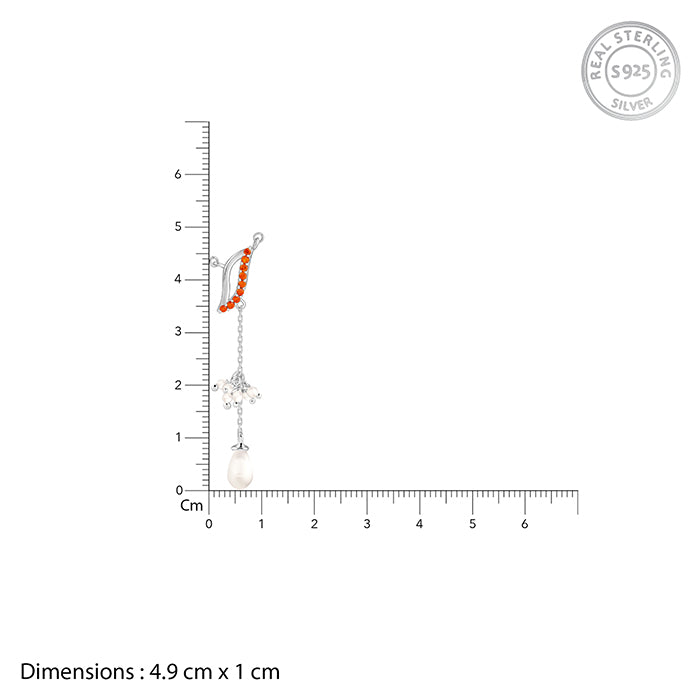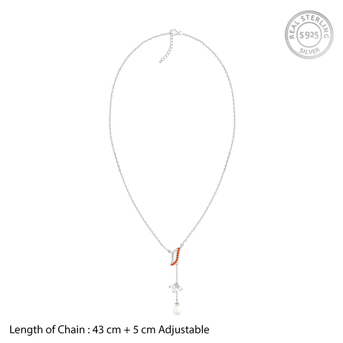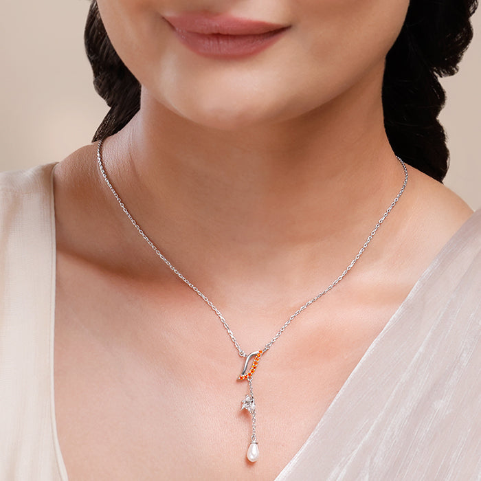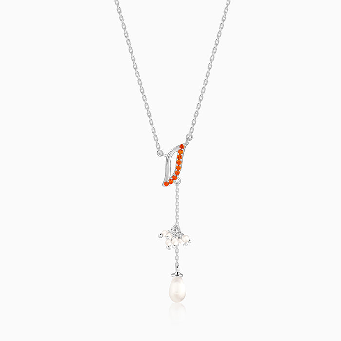 This silver lariat necklace for women features a leaf design studded with colourful zircons. A chain hangs below, set with a cluster of pearls and a single pearl at the end. Designed in Italy. Inspired by India. Embrace the goddess within with the Shakti Collection by GIVA x Anna Giulia Chicco.
