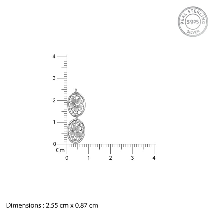 This silver jewellery set features a necklace and matching drop earrings designed with floral motifs, polished oval links and openwork detailing.