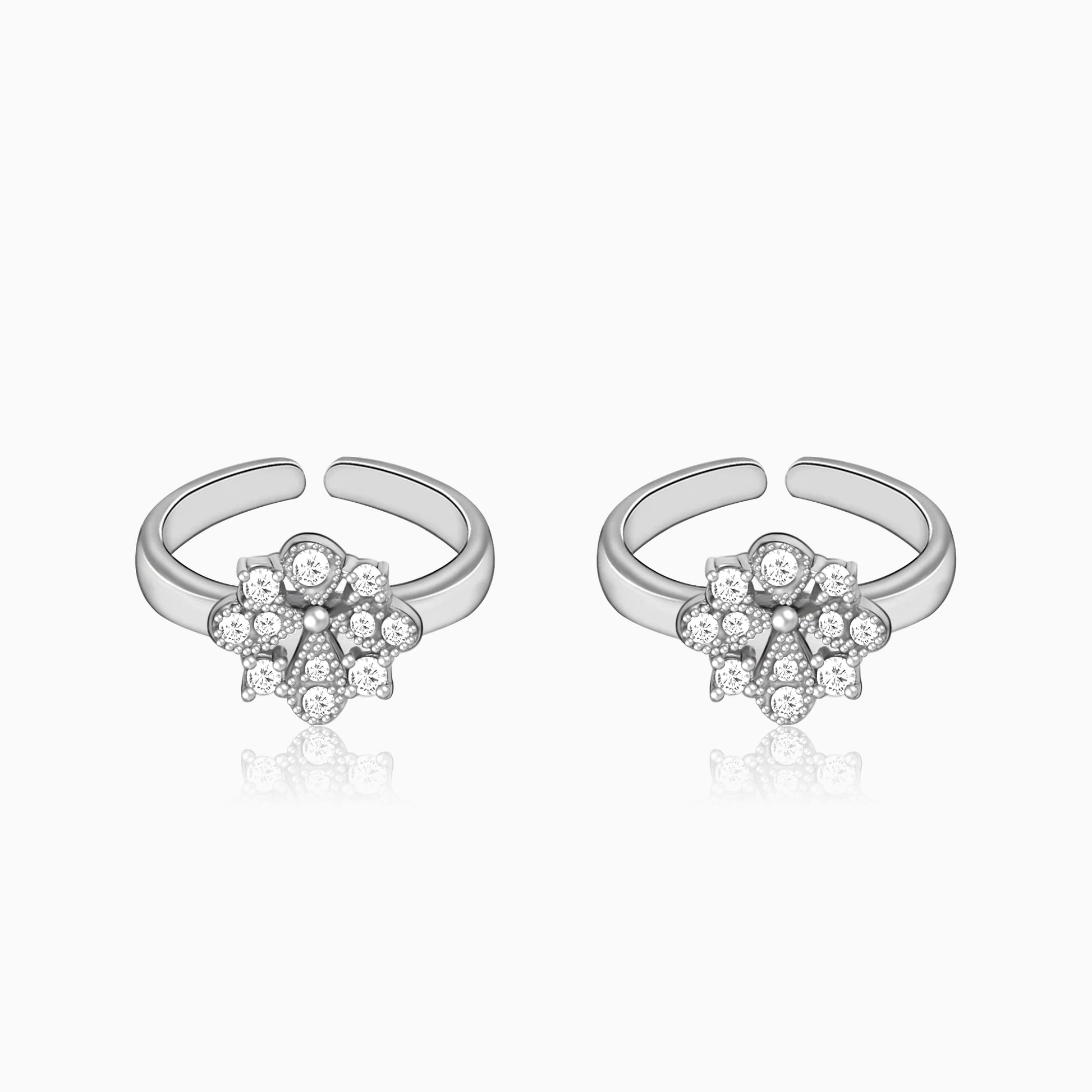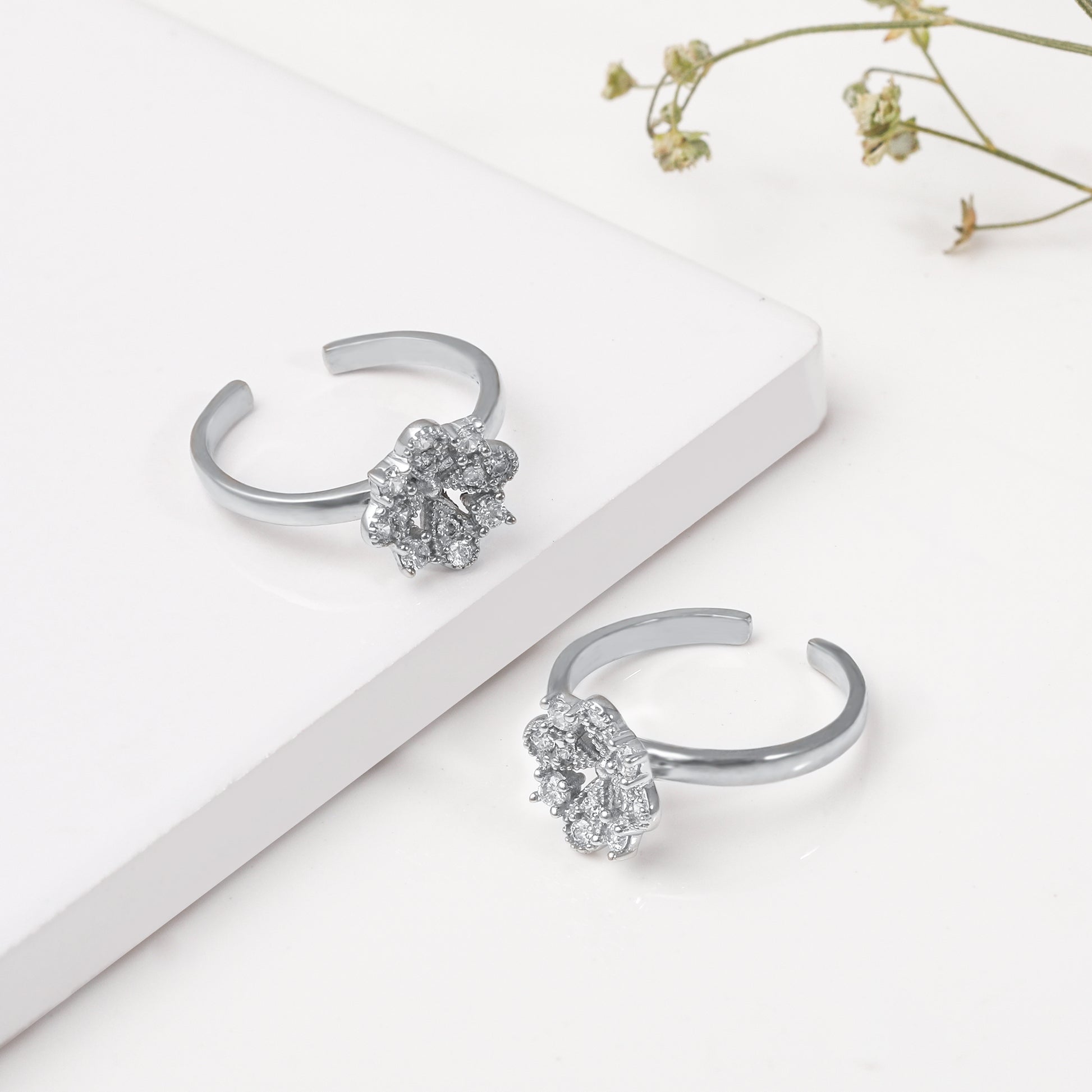We simply cannot get enough of flowers and that is why here’s an another masterpiece inspired by the nature’s gift- the Silver Shimmer Flower Toe Ring.
