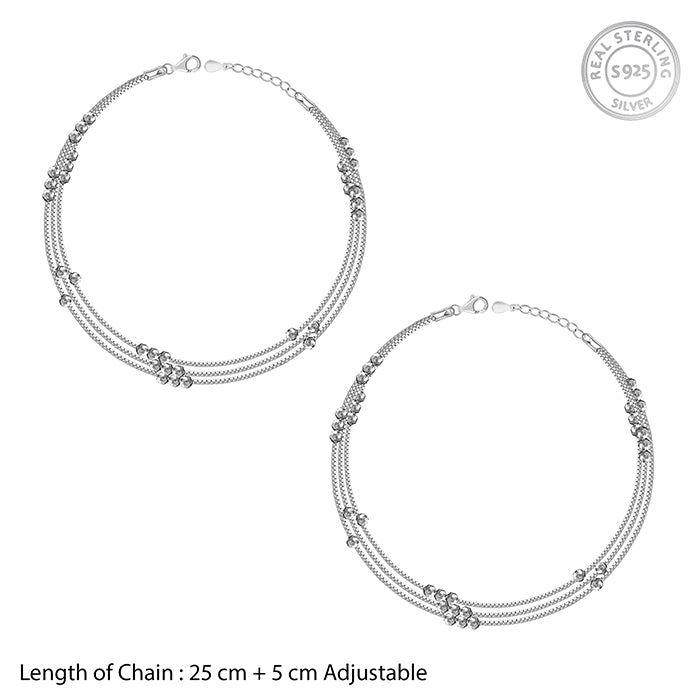 Let your footsteps leave behind a quiet sparkle. This silver anklet flows like a soft melody around your ankle, three strands woven together, accented with tiny polished beads that catch the light with every move. Barkha Singh x GIVA brings to you the Glow in Motion collection that celebrates CNC craftsmanship for the first time in silver.