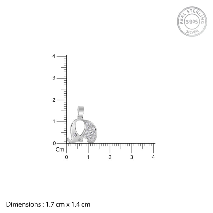 This silver kids pendant features an elephant motif with zircons. This pendant comes with a link chain.