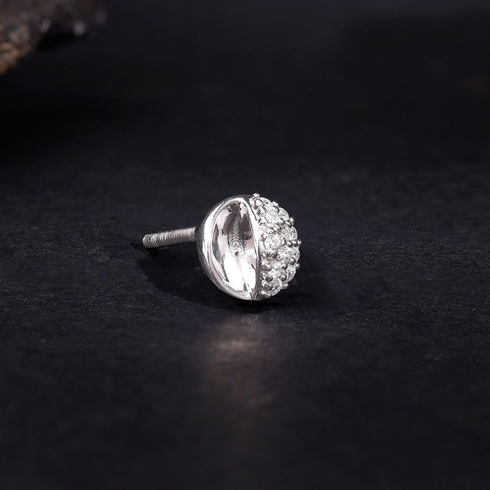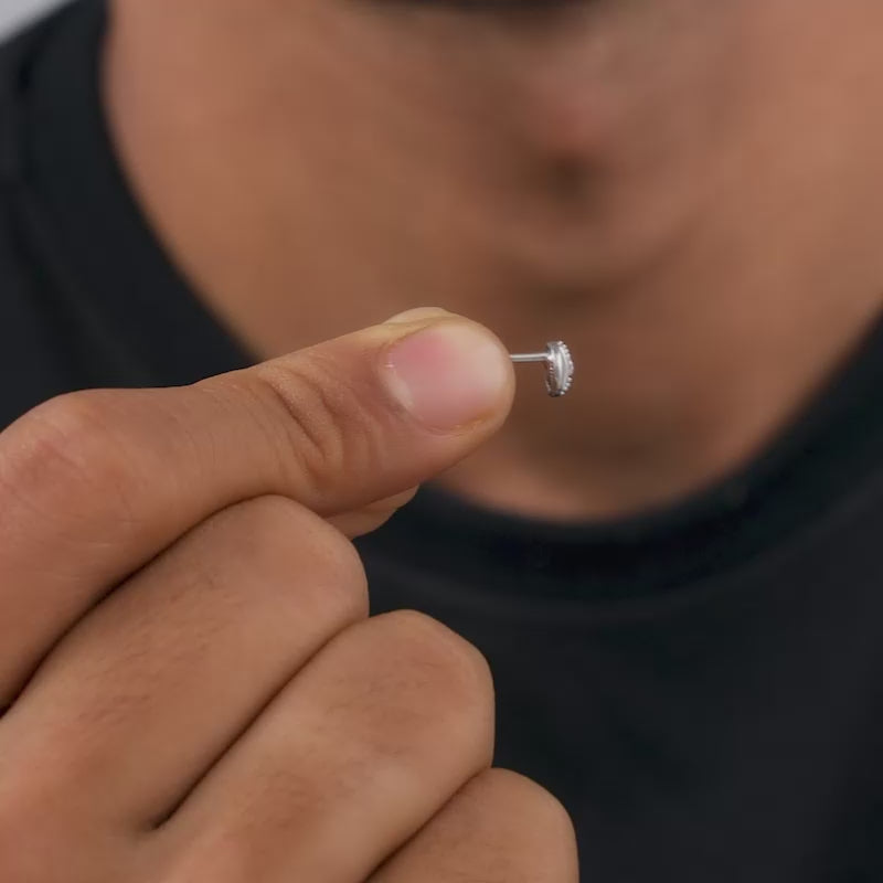 For the man who chooses quality over noise. He doesn’t dress to impress; he dresses to express. This silver stud for men features a unique circular design. One side has a smooth, polished surface, while the other is studded with zircons.