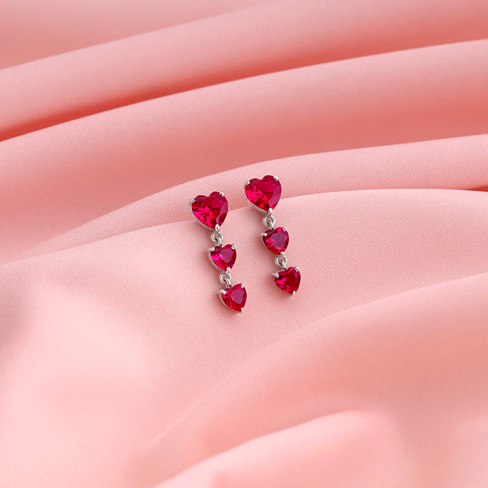 These silver earrings feature triple heart motifs in pink stones dangling in descending sizes. Celebrate your moments of passion with GIVA’s Red Romance Collection.