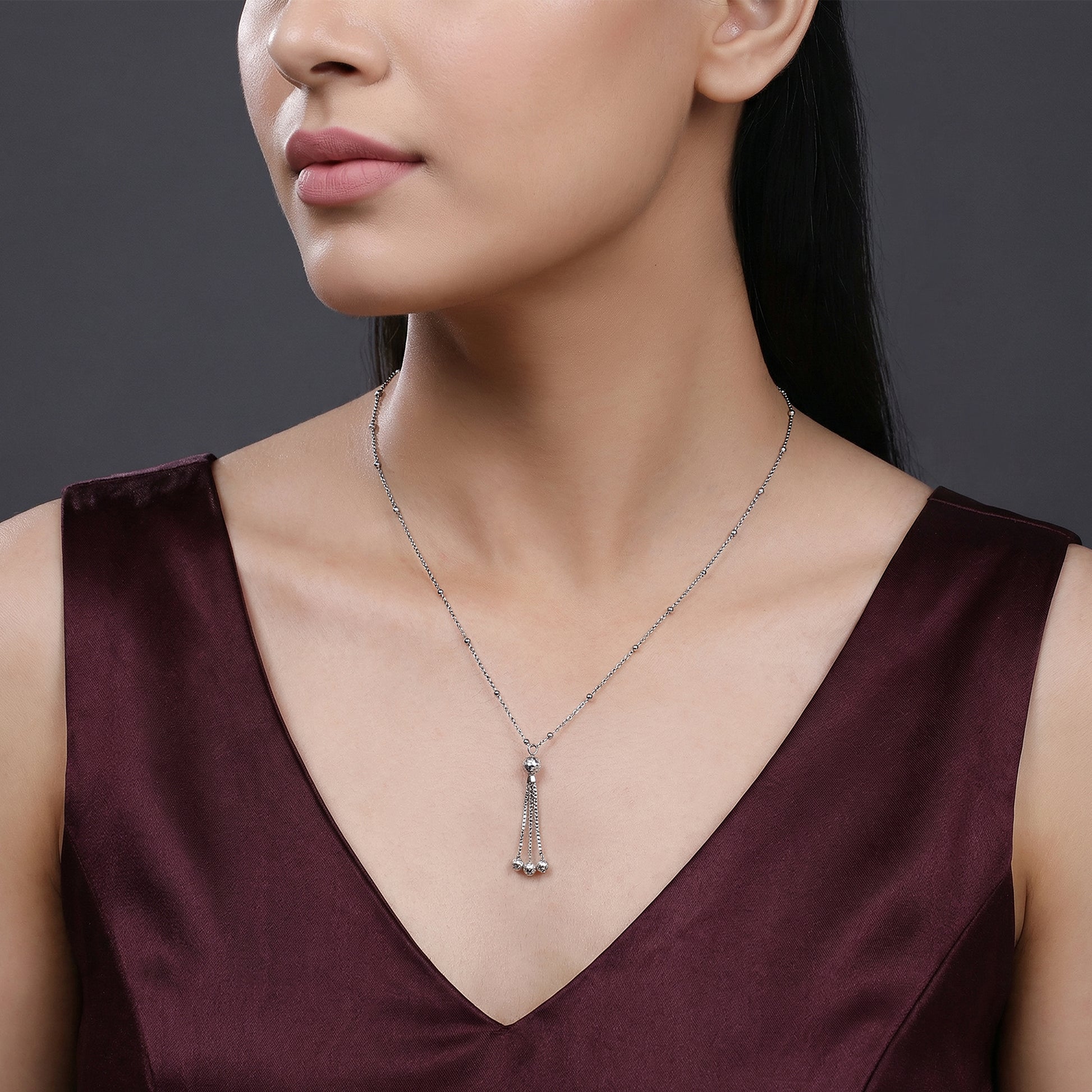 Like a whispered promise, this necklace catches the light in the most intimate way. The precision-crafted CNC beads add a modern sparkle to the classic negligee silhouette, creating a fluid movement that feels like a soft caress against the skin. Barkha Singh x GIVA brings to you the Glow in Motion collection that celebrates CNC craftsmanship for the first time in silver.