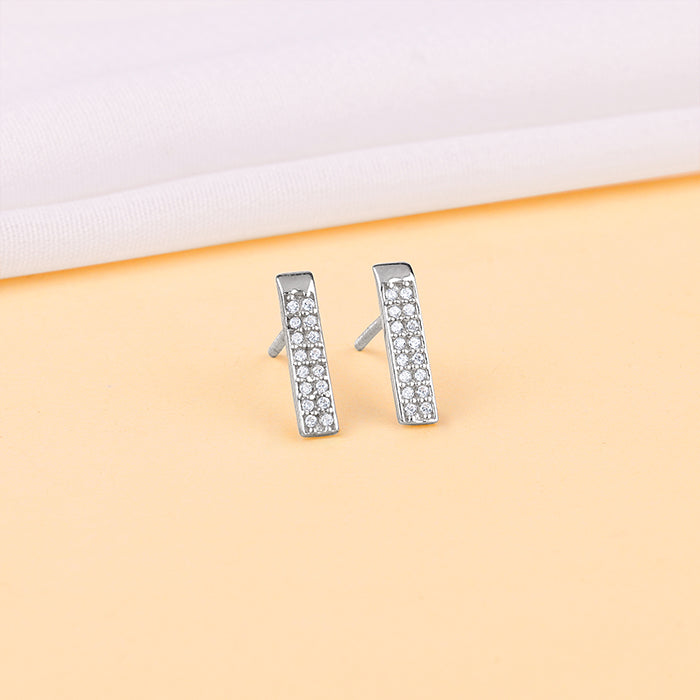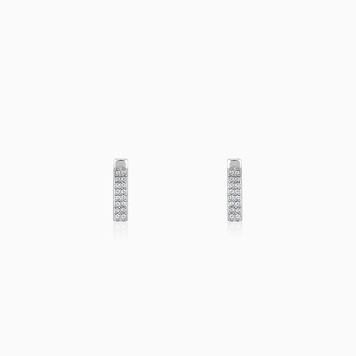 These silver earrings for women each feature a vertical bar, set with two rows of zircons.