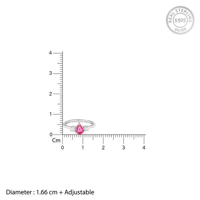 This silver ring features a pear-shaped pink coloured stone at the centre, with two zircons placed on either side. Celebrate your moments of passion with GIVA’s Red Romance Collection.