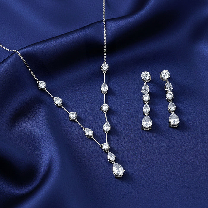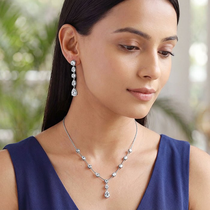 This silver set includes a necklace and matching earrings designed to move with you. Featuring cascading zircon drops, the design catches the light from every angle and commands attention without trying too hard, turning every night out into a moment worth remembering. Barkha Singh x GIVA brings to you the Glow in Motion collection that celebrates CNC craftsmanship for the first time in silver.
