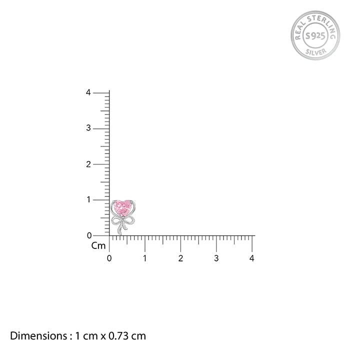 These silver earrings for women feature a heart-shaped coloured stone at the centre, with a bow design beneath it.