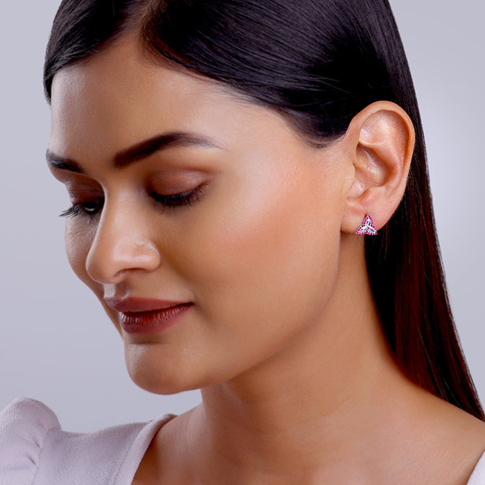 These rose gold earrings have a trillium motif studded with zircon and coloured stones. Celebrate the beauty of nature's rarest blooms with GIVA and Bhumi Pednekar - The Bhumi Collection.
