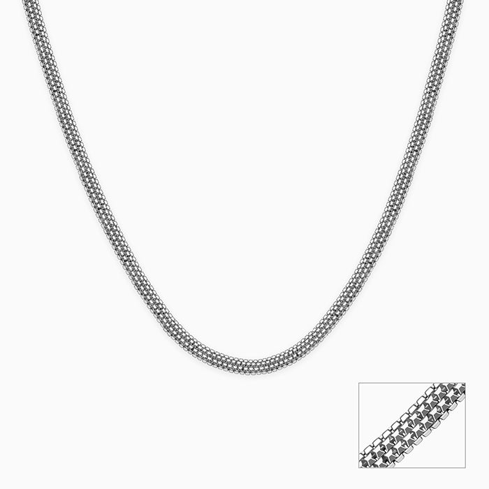 With its structured triple box design, this chain brings depth and definition to everyday styling. A confident choice...