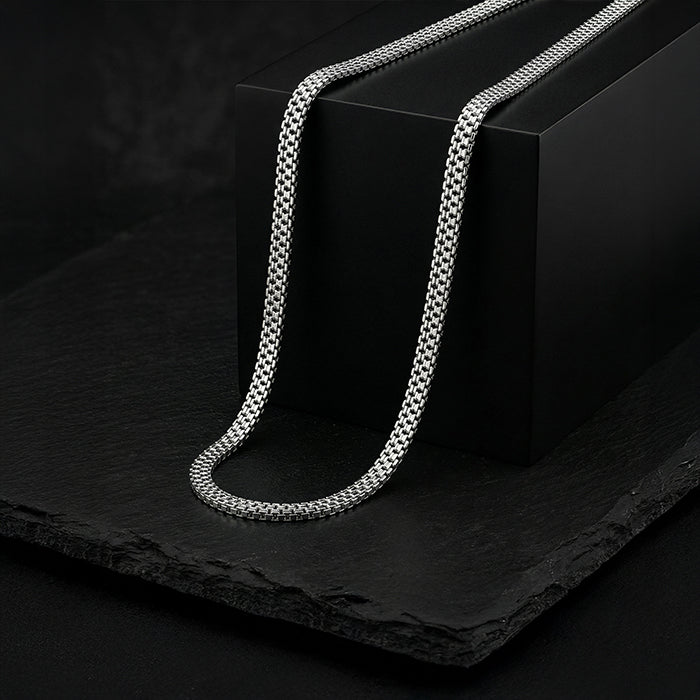 With its structured triple box design, this chain brings depth and definition to everyday styling. A confident choice for men who believe presence is built, not borrowed.