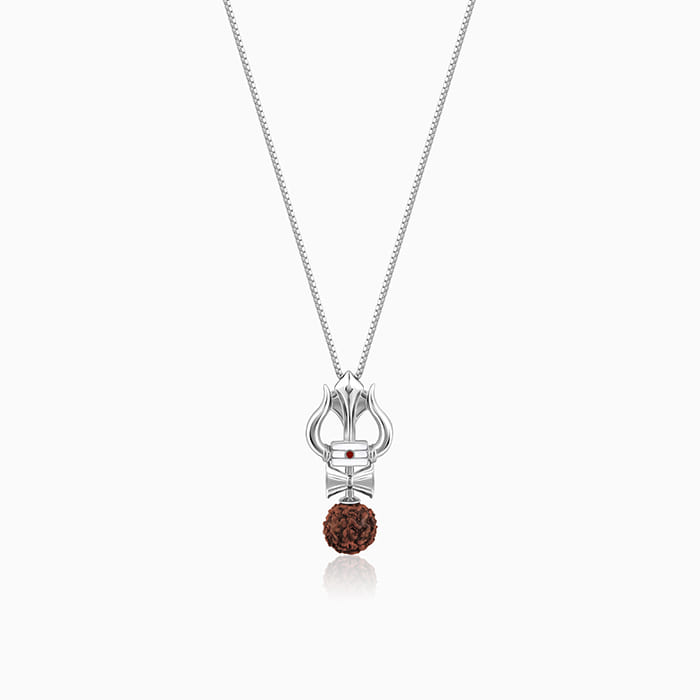 Silver Trishul Rudraksha Pendant With Box Chain For Him