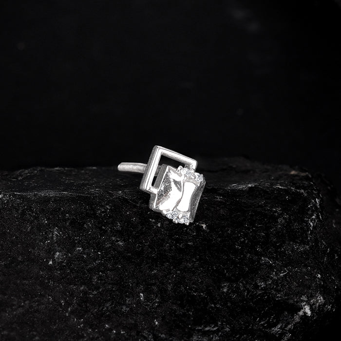 He doesn’t speak in fashion; he speaks in essence. And this one subtle detail says more than most could in a sentence. This silver stud for men features an abstract geometric design with a bold, angular silhouette. The design is partially accented with zircons.