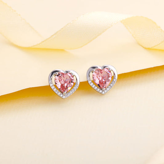 This silver ring features a dreamy pink zircon heart, prong set in rhodium-coated silver with an outline frame of CZ's.