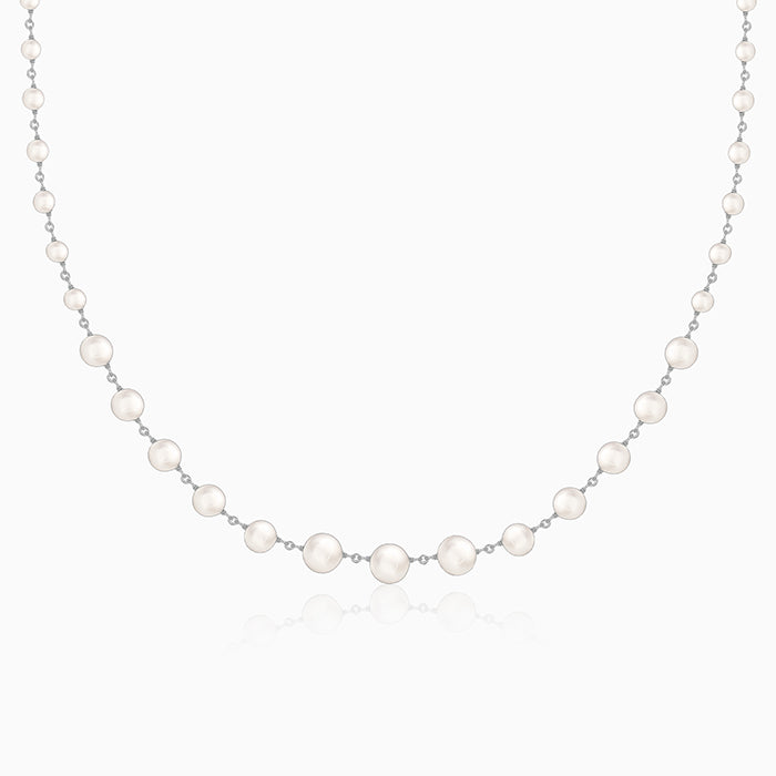 Designed for the woman who likes her jewellery clean and confident, this silver necklace with its white pearl sits be...