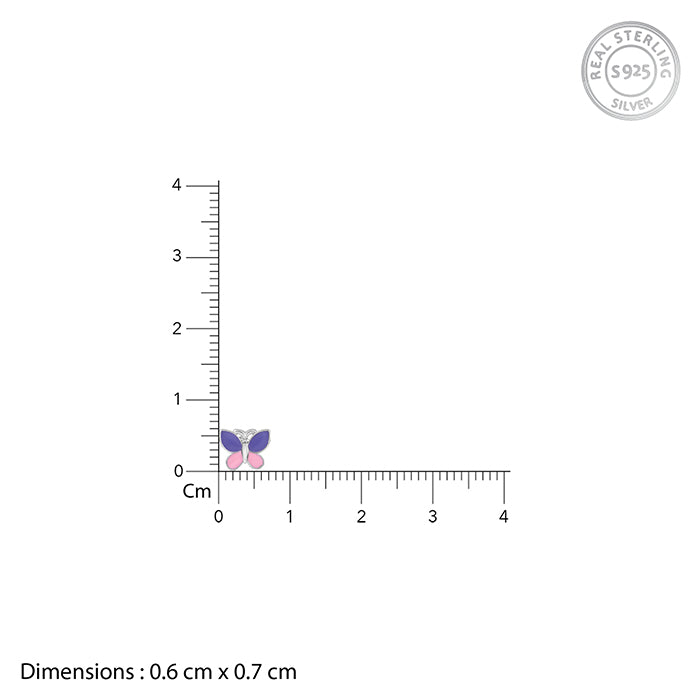 These silver studs for kids feature an adorable butterfly motif, with its upper and lower wings filled with different-coloured enamel.