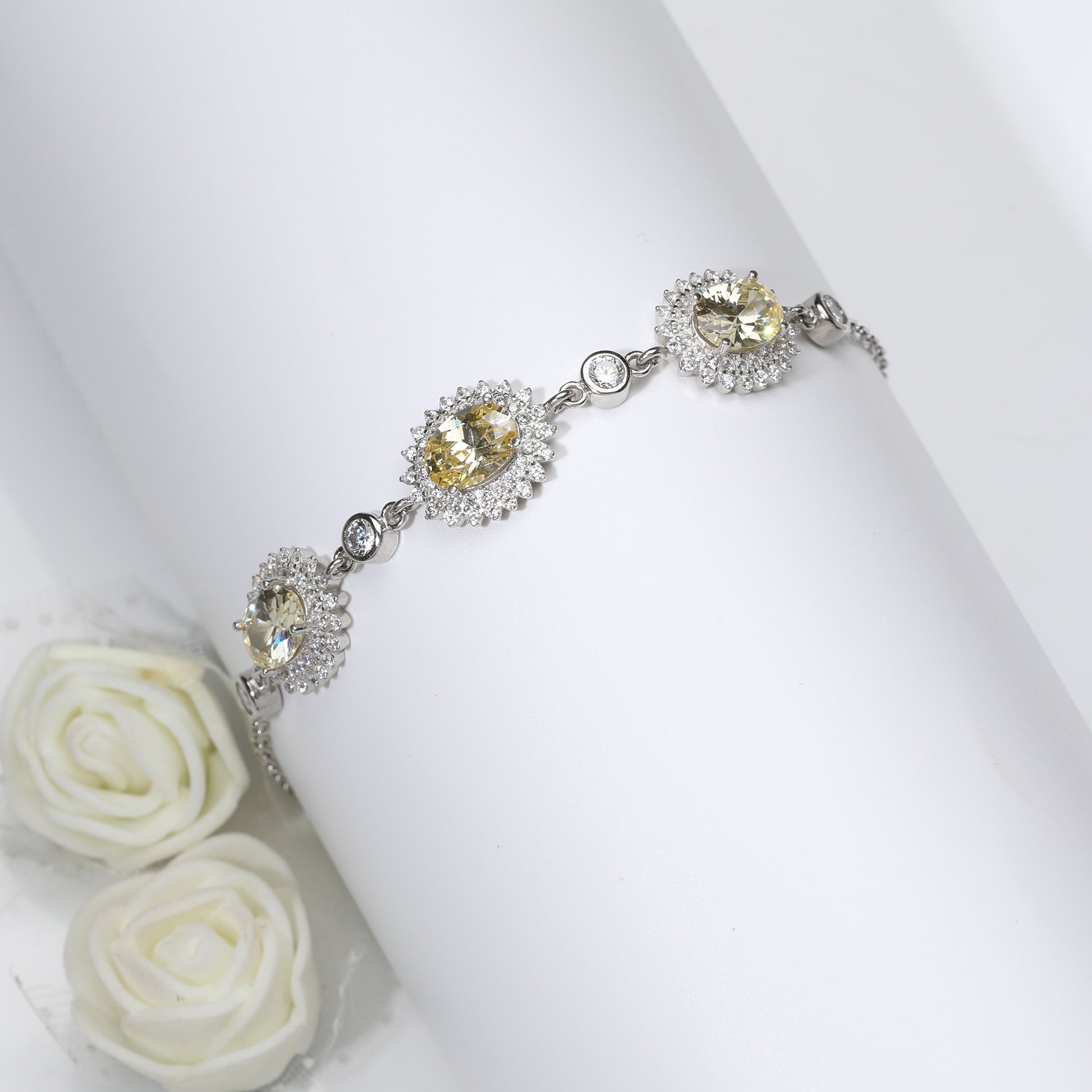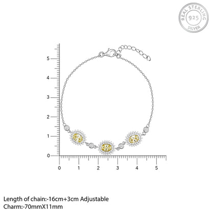 The Silver Yellow Sunshine Trio Bracelet is handcrafted with love, just for YOU. This bracelet is made for the queens. The yellow stones symmetrically sitting in the silver frame and surrounded by the shiny zircons is nothing less than regal.