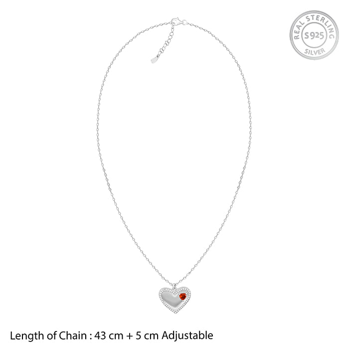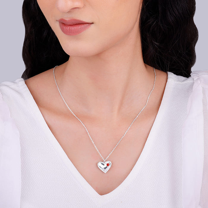 This silver pendant has a heart design set with zircons on the edge and a red stoned heart in the top corner that has a sliding mechanism which reveals the message. Celebrate your moments of passion with GIVA’s Red Romance Collection.