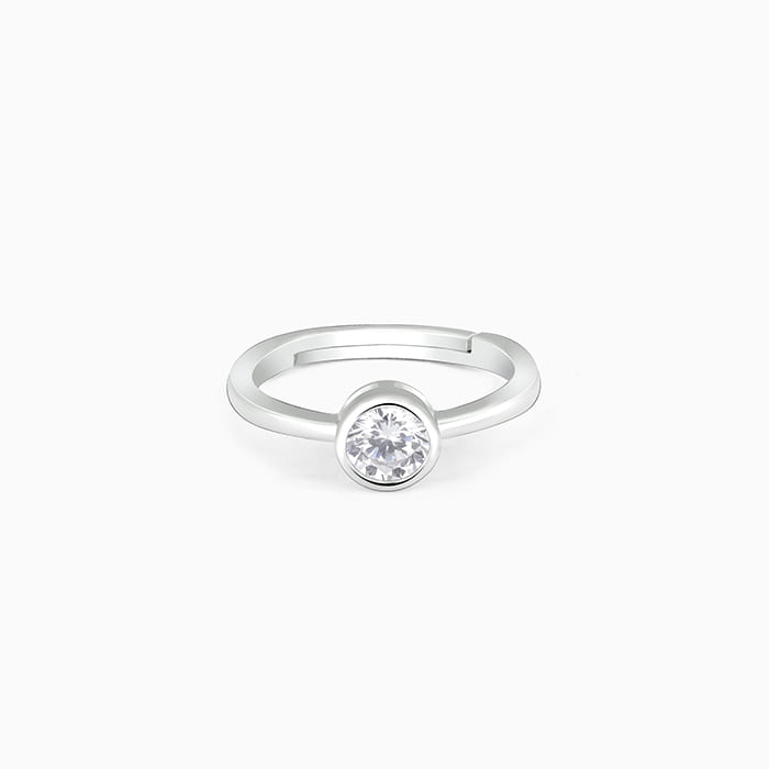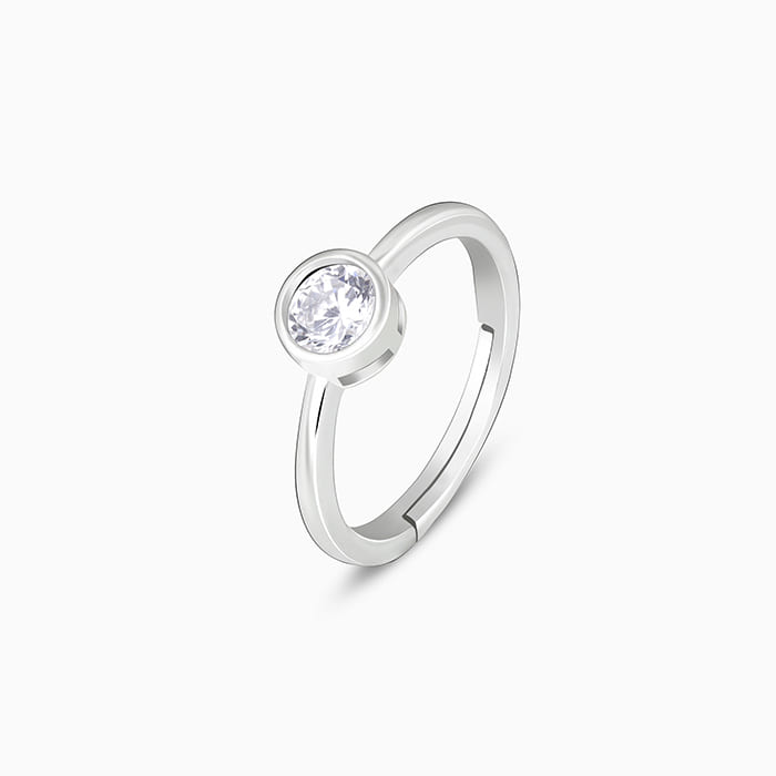 This silver ring features a bezel set single stone zircon in a plain silver band.
