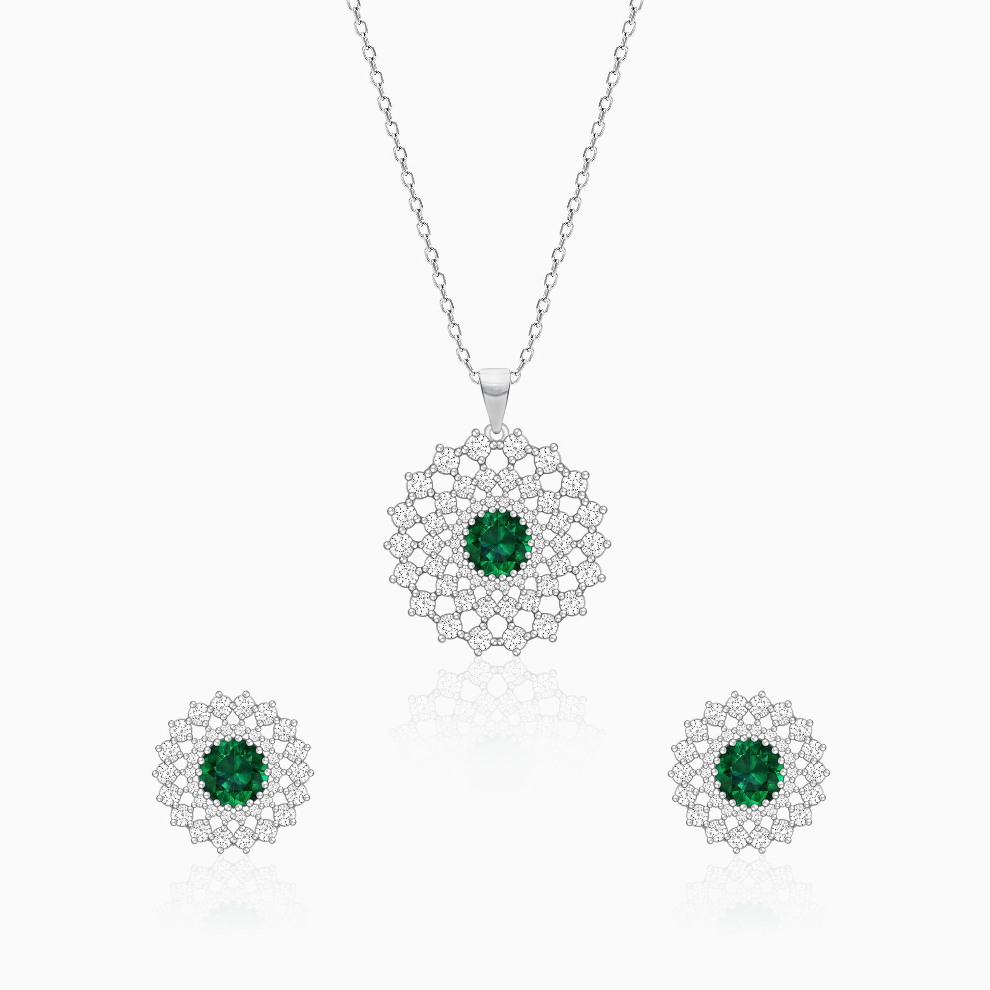 Silver Zircon Emerald Sunshine Pendant Set is handcrafted with love, just for YOU. The glorious emerald is surrounded by the shiniest zircons. A true vision to behold.
