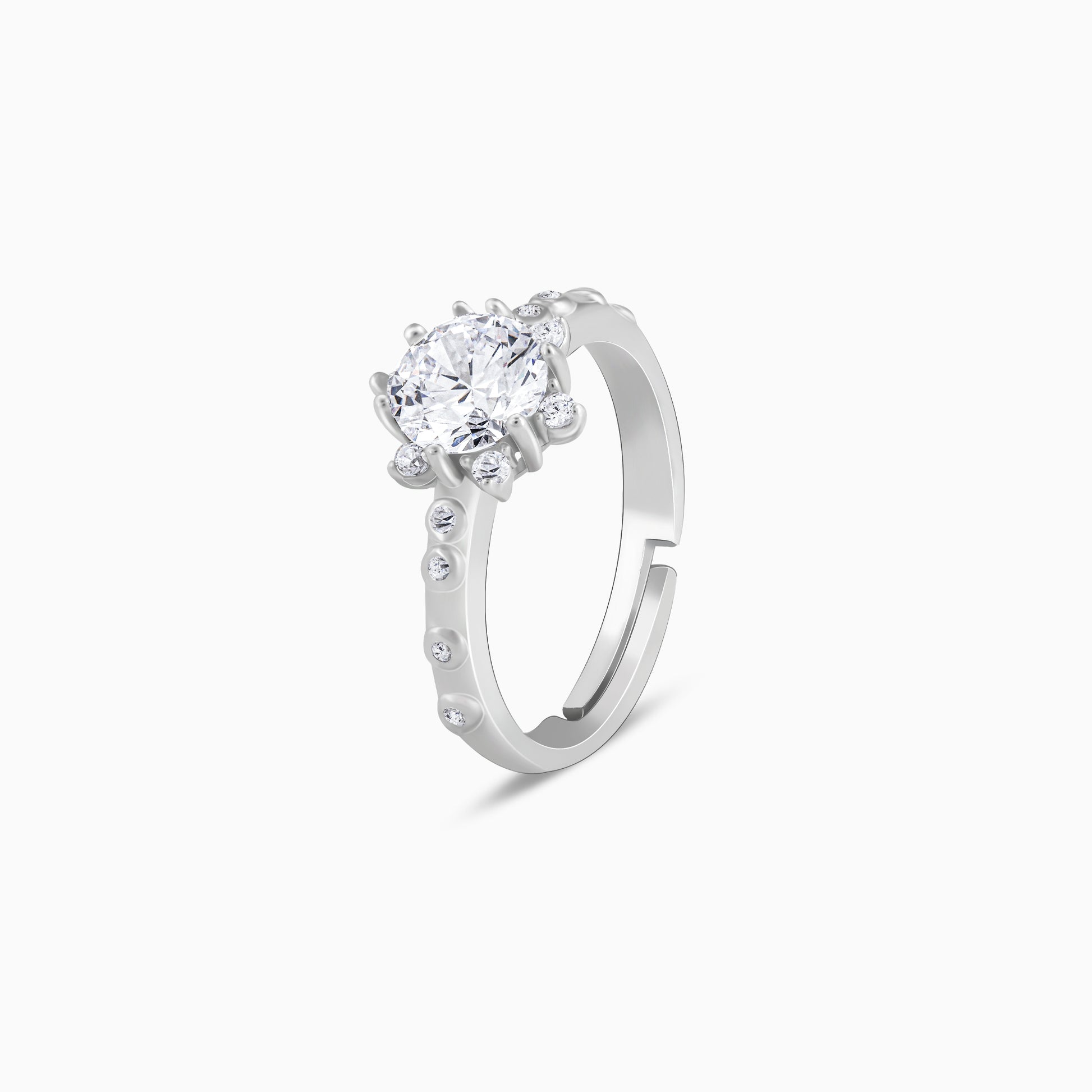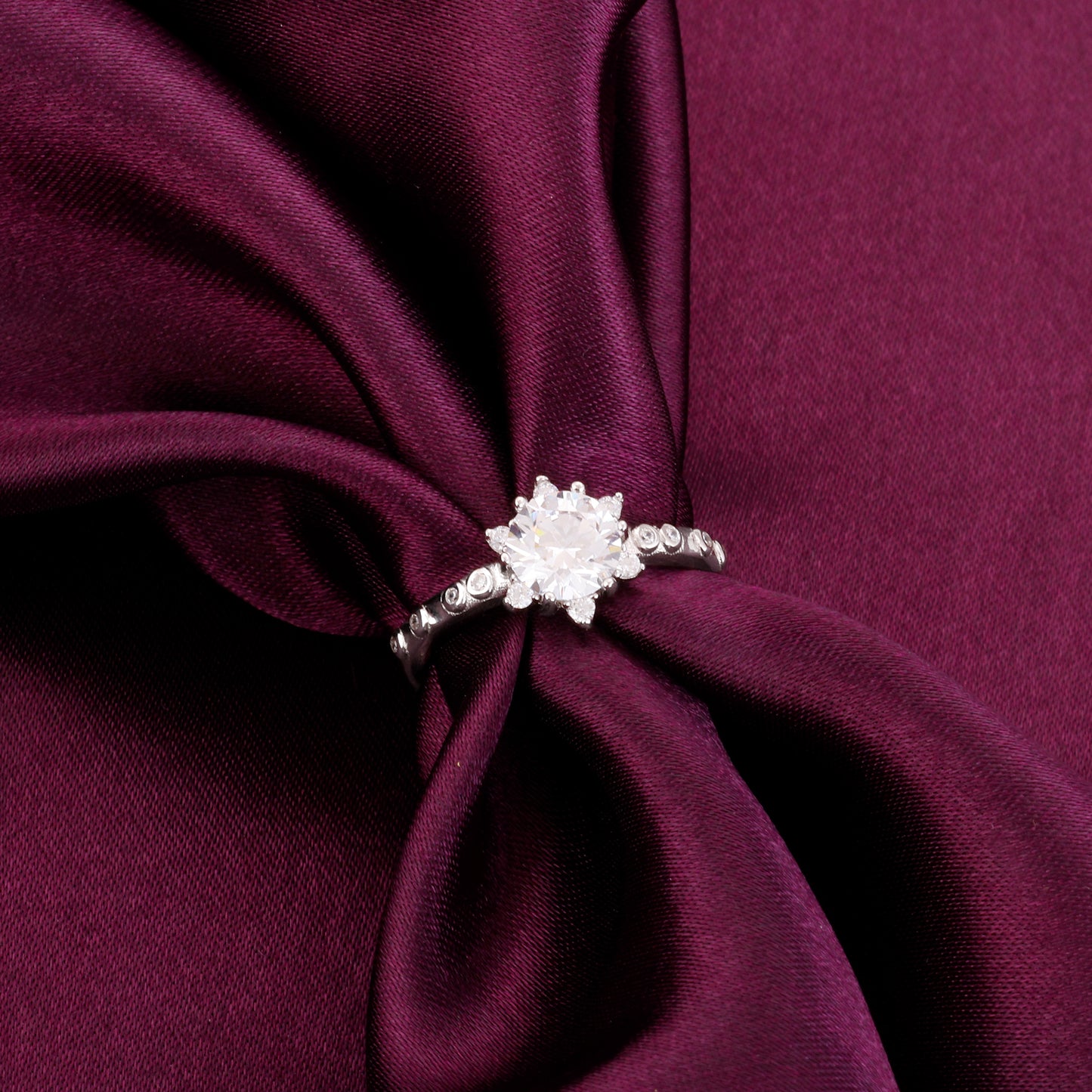 The Silver Zircon Flower Renaissance Ring has the classic winner design of a blooming flower in the centre, just here - it is studded with sparkling zircons!