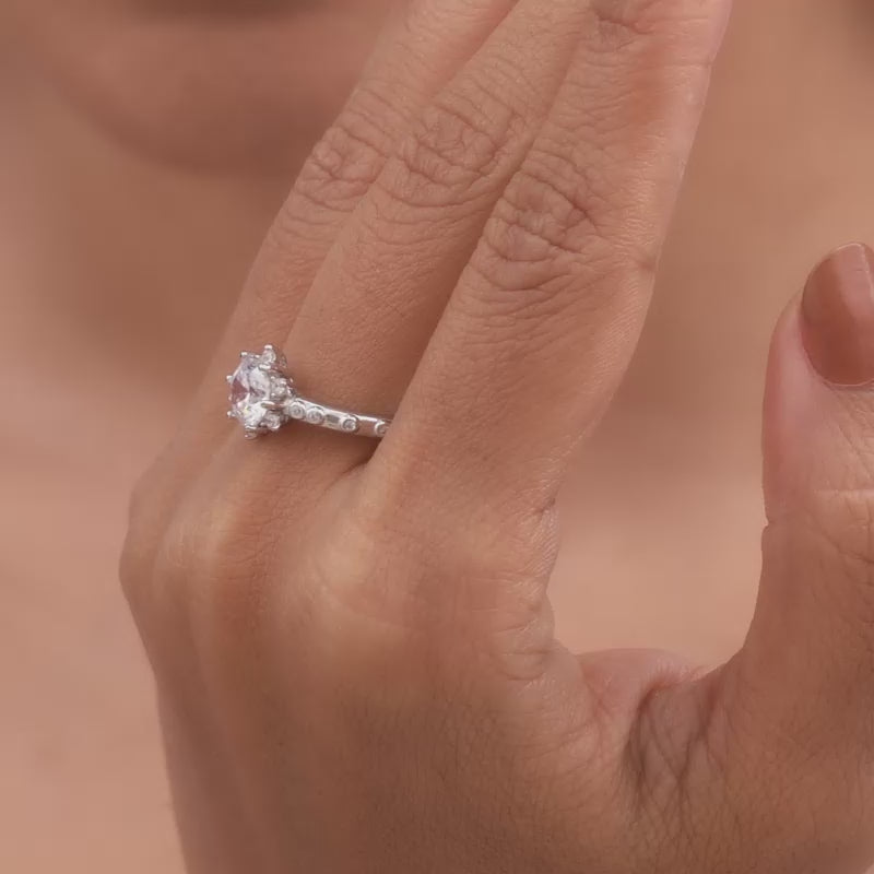 The Silver Zircon Flower Renaissance Ring is a befitting tribute to the first bloom on a spring morning. Fresh, inviting, and liberating!