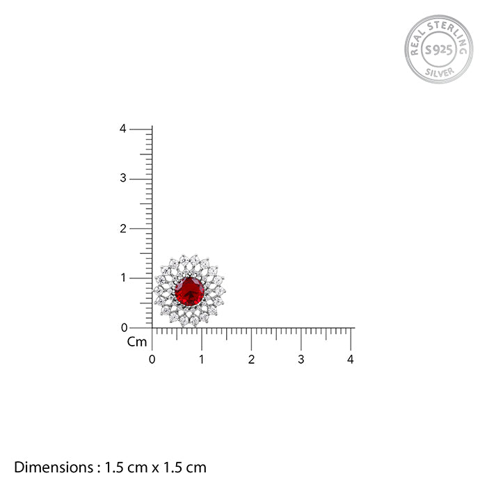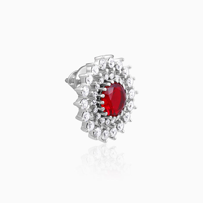 These silver earrings feature a circular motif with red stone, surrounded by line projections studded with zircons. Celebrate your moments of passion with GIVA’s Red Romance Collection.