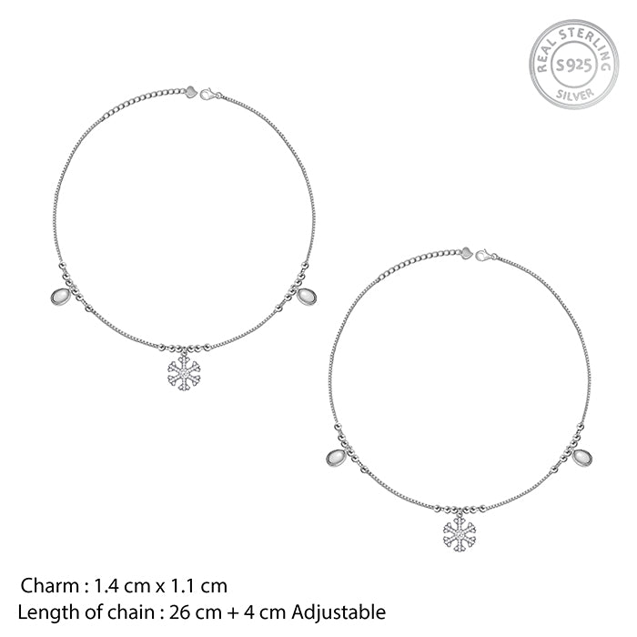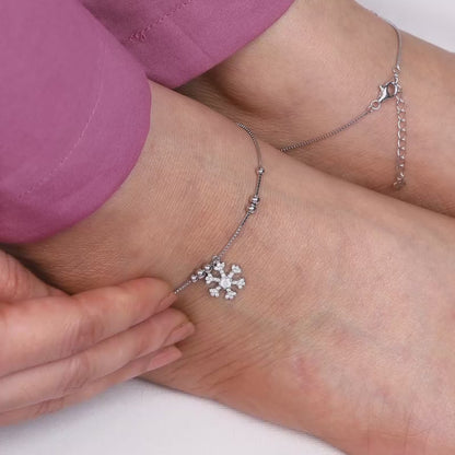 Silver Zircon Snowflake Anklet