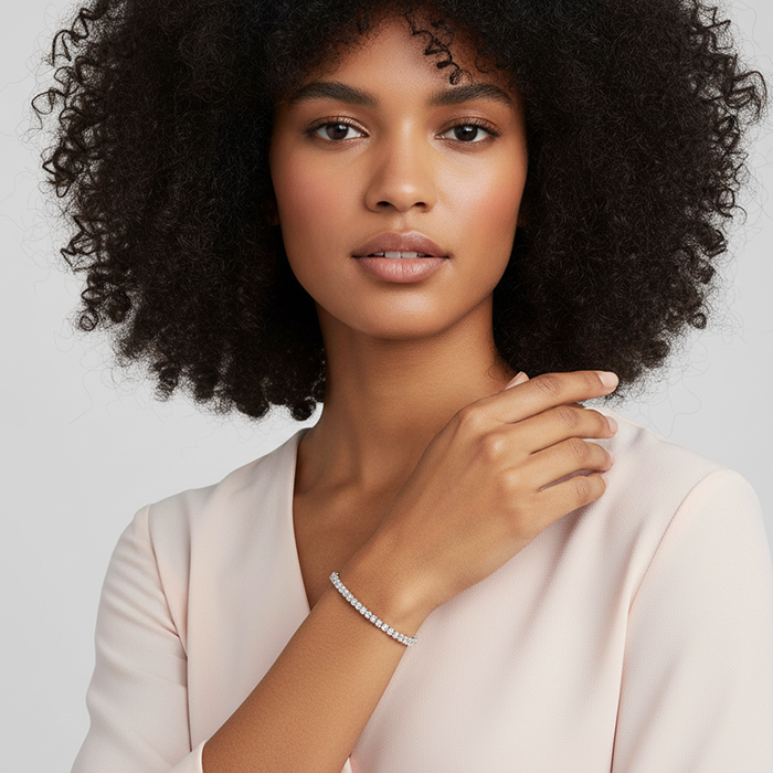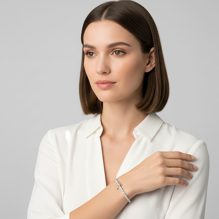 There’s nothing like capturing that ping of sparkle. Here’s that ping multiplied for a piece that’ll induce gasps for decades to come. Presenting, YOUR Silver Zircon Tennis Bracelet.