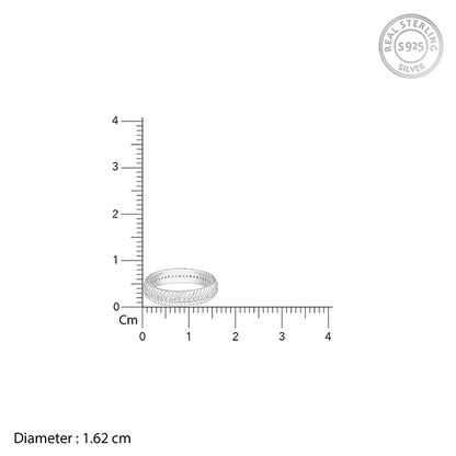 This gorgeous silver ring has a unique design of zircon studded row, flanked on each sides by engraved strokes.