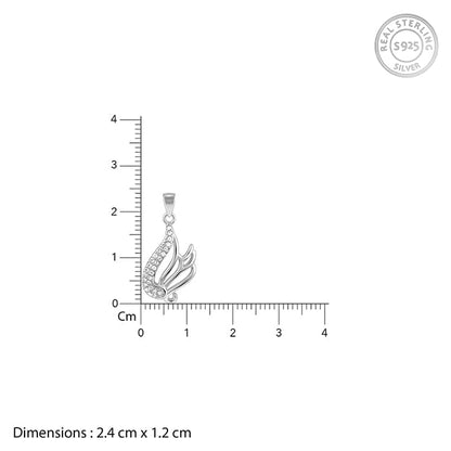 This silver pendant is shaped like wings and set with dazzling zircons.