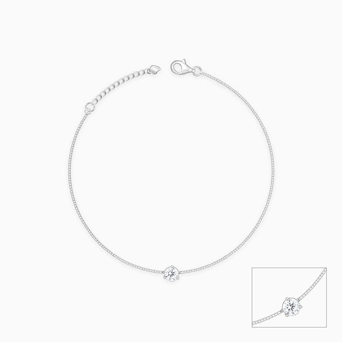 This silver anklet features a zircon in the centre.